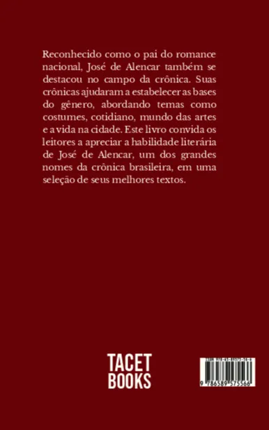 Reconhecido como o pai do romance nacional, José de Alencar também se destacou no campo da crônica. Suas crônicas ajudaram a estabelecer as bases do gênero, abordando temas como costumes, cotidiano, mundo das artes e a vida na cidade. Este livro convida os leitores a apreciar a habilidade literária de José de Alencar, um dos grandes nomes da crônica brasileira, em uma seleção de seus melhores textos.