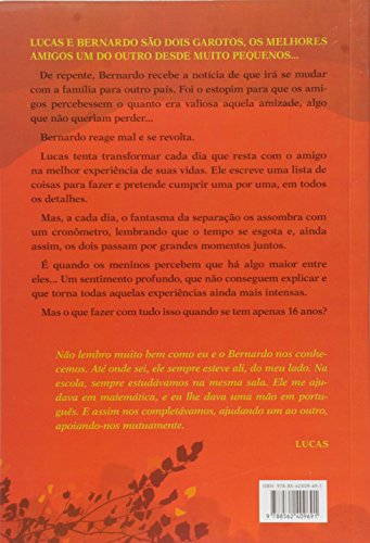 Lucas e Bernardo são dois garotos, melhores amigos um do outro. De repente, recebem a notícia de que Bernardo irá se mudar com a família para outro país. E percebem que não querem perder a valiosa amizade… Lucas tenta transformar cada dia que resta com o amigo na melhor experiência de suas vidas: escreve uma lista de coisas para fazer e pretende cumprir uma por uma, em todos os detalhes. Então os meninos percebem que há algo mais forte entre eles… Um sentimento profundo, que não conseguem explicar e que torna todas aquelas experiências ainda mais intensas. Mas o que fazer com tudo isso quando se tem apenas 16 anos?