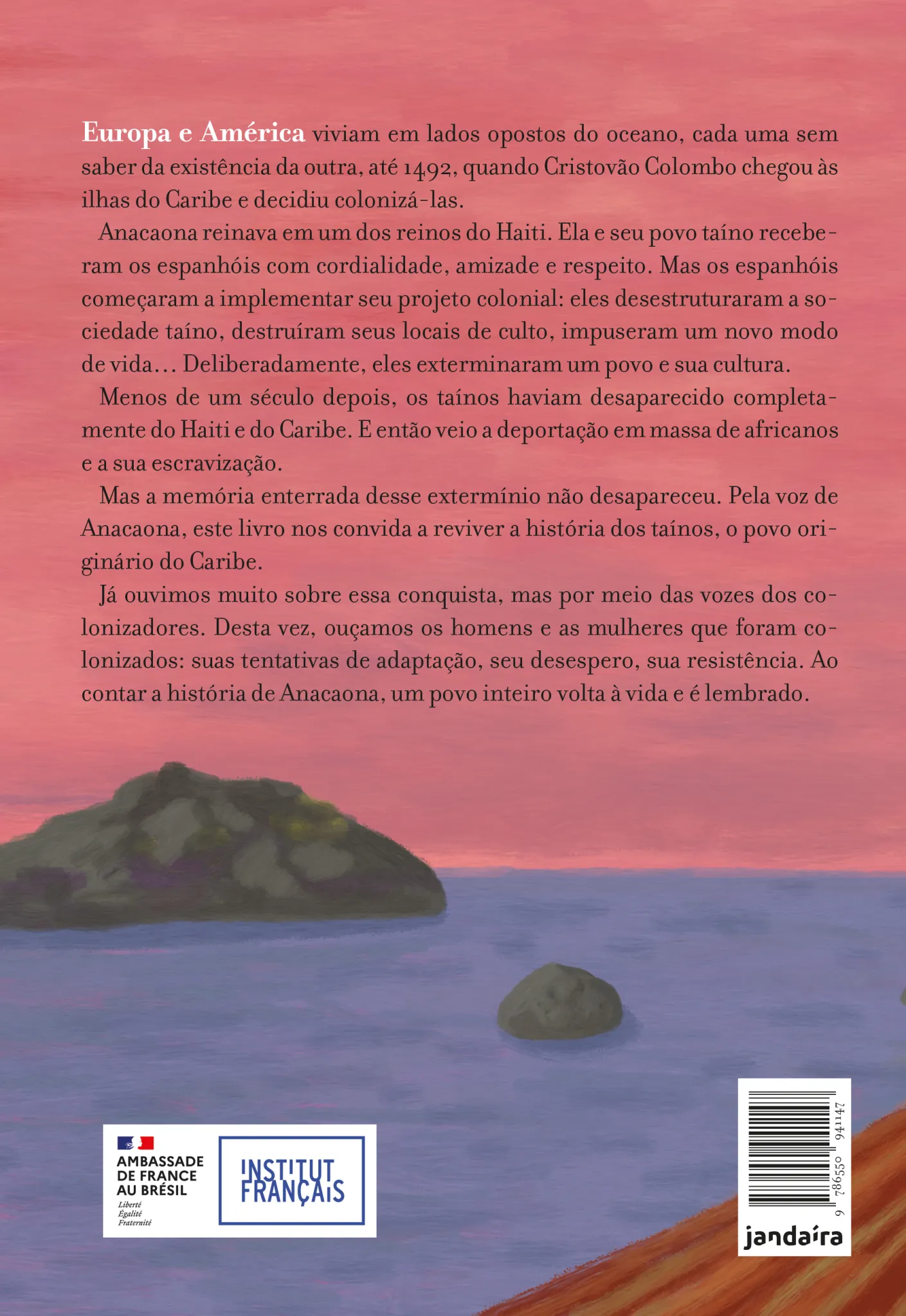 Através da voz de Anacaona, líder dos povos originários das Antilhas, este livro revive a história e resistência dos Taínos, oferece uma perspectiva da História do ponto de vista dos colonizados e honra a memória de um povo massacrado pela colonização iniciada por Cristóvão Colombo a partir de 1492.