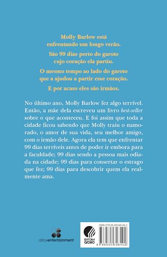Será que um erro pode definir quem você é? Um romance YA com triângulo amoroso ideal para os fãs de O verão que mudou a minha vida e Para todos os garotos que já amei No último ano, Molly Barlow fez algo terrível: traiu o namorado, Patrick Donnelly, com o irmão dele, Gabe Donnelly. Como se não bastasse a culpa que carrega, sua mãe fez o favor de escrever um livro contando a sua história, que deveria ser um segredo entre elas. O livro se tornou um best-seller e, graças a ele, toda a cidade descobriu o que Molly fez. Massacrada por todos, principalmente por Julia Donnelly, irmã dos meninos, Molly decide viver um ano fora e fugir da espiral de ódio e fofoca que suscitou em Star Lake. De volta à cidade nas férias de verão, ela precisa acertar as contas com aqueles que lhe fizeram mal e tentar resgatar os laços com quem era especial. Agora, Molly terá que enfrentar 99 dias terríveis antes de poder ir embora para a faculdade; 99 dias sendo a pessoa mais odiada na cidade; 99 dias para consertar o estrago que fez; 99 dias para descobrir quem ela realmente ama. Com adaptação confirmada para filme, 99 dias é uma história envolvente e reflexiva de Katie Cotugno, autora best-seller do New York Times, que aborda temas como traição, julgamento, perdão e as consequências de nossos atos.