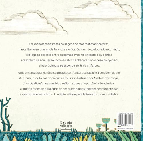 Em meio às majestosas paisagens de montanhas e florestas, nasce Guimosa, uma águia formosa e única. Com um bico dourado e curvado, ela logo se destaca entre as demais aves. No entanto, o que antes era motivo de admiração torna-se alvo de chacota. Sob o peso da opinião alheia, Guimosa se esconde atrás de disfarces. Uma encantadora história sobre autoconfiança, aceitação e a coragem de ser diferente, escrita por Donaldo Buchweitz e ilustrada por Mathias Townsend, A Águia Bicuda nos convida a refletir sobre a importância de valorizara própria essência e a alegria de ser quem somos, independentemente das expectativas dos outros. Uma lição valiosa para leitores de todas as idades.