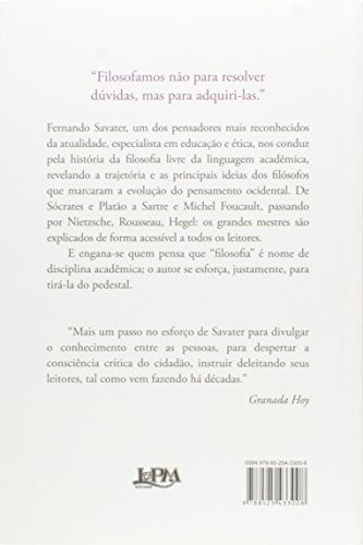 “Uma vida sem reflexão não vale a pena ser vivida.” Não há nada mais confortável para a mente humana, nem mais perigoso, do que as certezas. Nossa melhor defesa contra tal armadilha é a filosofia, que consiste em grande parte na arte de questionar, de se atrever a pensar, de interpretar as verdades estabelecidas e buscar o que elas ocultam. Neste passeio pela história da filosofia, Fernando Savater nos apresenta os grandes personagens que, com suas indagações – e às vezes com suas respostas – marcaram o pensamento ocidental. Platão, Aristóteles, Hobbes, Tomás de Aquino, Nietzsche, Marx, Wittgenstein e outros, chegando até Michel Foucault, desfilam aprazivelmente por estas páginas; Savater, com seu habitual estilo lúcido, suave e inteligente, explica as ideias mais importantes e resume as trajetórias desses grandes pensadores. Um verdadeiro louvor ao irrenunciável exercício de liberdade intelectual, este livro é, na verdade, um convite a compartilhar com os grandes filósofos a maravilhosa aventura de pensar.