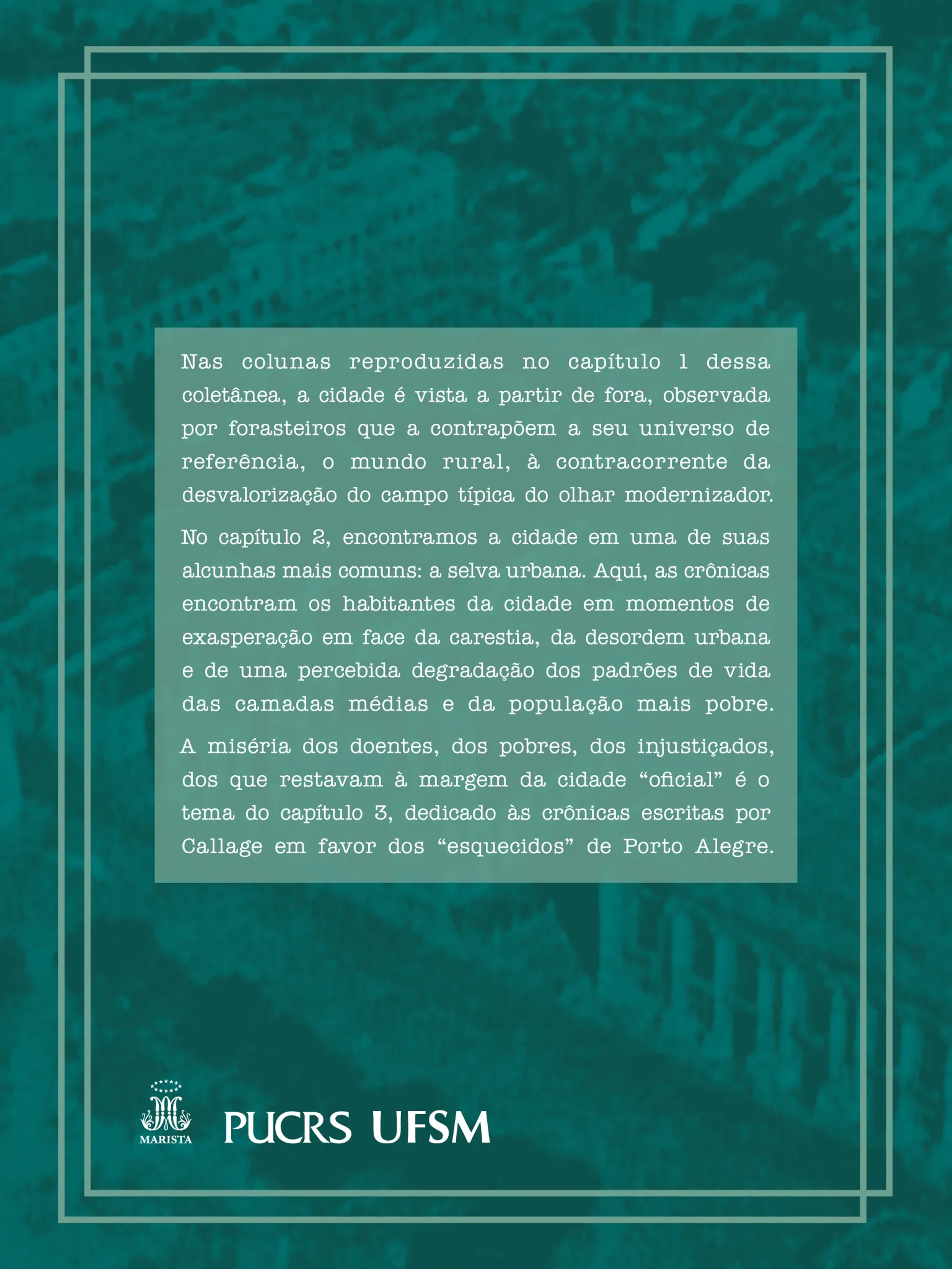 A miséria dos doentes, dos pobres, dos injustiçados, dos que restavam à margem da cidade “oficial” é o tema do capítulo 3, dedicado às crônicas escritas por Callage em favor dos “esquecidos” de Porto Alegre.