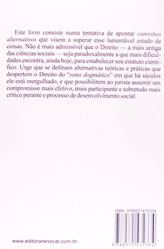 Este livro consiste numa tentativa de apontar caminhos alternativos que visem a superar esse lamentável estado de coisas. Não é mais admissível que o Direito – a mais antiga das ciências sociais – seja paradoxalmente a que mais dificuldades encontra, ainda hoje, para estabelecer seu estatuto científico. Urge que se definam alternativas teóricas e práticas que despertem o Direito do sono dogmático em que há séculos ele está mergulhado, e que possibilitem ao jurista assumir um compromisso mais efetivo, mais participante e sobretudo mais crítico perante o processo de desenvolvimento social.