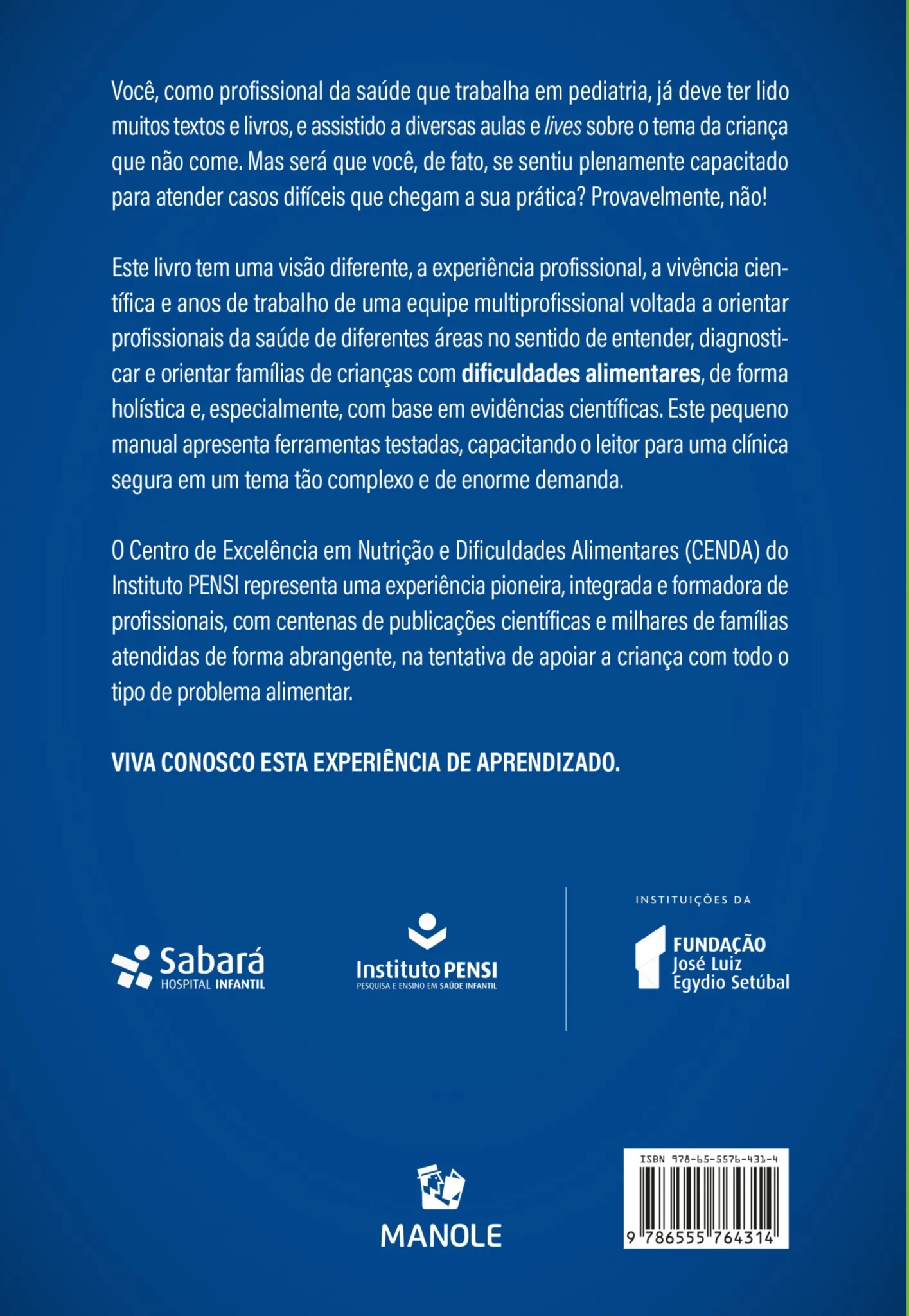 Com condutas e respostas baseadas em ciência, observação qualitativa e quantitativa, experiência e vivência de um centro pioneiro, liderado por profissionais que trabalham e pesquisam o tema há mais de 40 anos, esperamos que esta obra permita que outros profissionais consigam tranquilizar, apoiar e acompanhar, de maneira completa, as famílias de crianças com dificuldades alimentares.