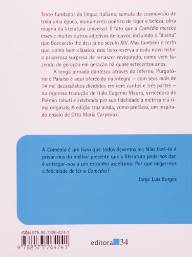 Poema épico e obra-prima de Dante Alighieri, que começou a escrevê-la provavelmente por volta de 1307, concluindo-a pouco antes de sua morte, em 1321. A obra é um poema narrativo de cunho teológico rigorosamente simétrico e planejado, que mostra a longa viagem do personagem principal pelo Inferno, Purgatório e Paraíso. Cada etapa dessa jornada é descrita com detalhes quase visuais. Dante, o personagem principal, é guiado no Inferno e no Purgatório pelo poeta Virgílio, enquanto é Beatriz, sua musa inspiradora, quem o guia no Paraíso.