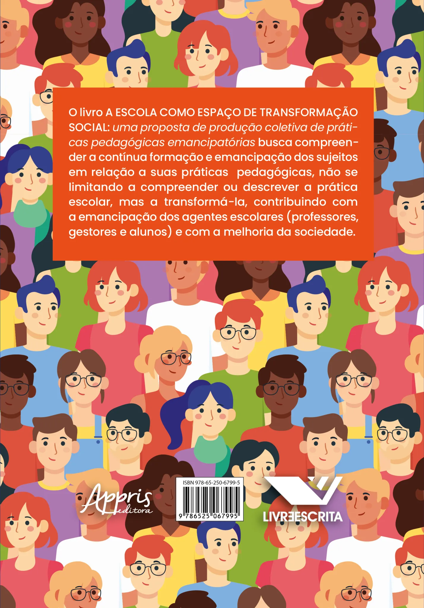 O livro A ESCOLA COMO ESPAÇO DE TRANSFORMAÇÃO SOCIAL: uma proposta de produção coletiva de práticas pedagógicas emancipatórias busca compreender a contínua formação e emancipação dos sujeitos em relação a suas práticas pedagógicas, não se limitando a compreender ou descrever a prática escolar, mas a transformá-la, contribuindo com a emancipação dos agentes escolares (professores, gestores e alunos) e com a melhoria da sociedade.