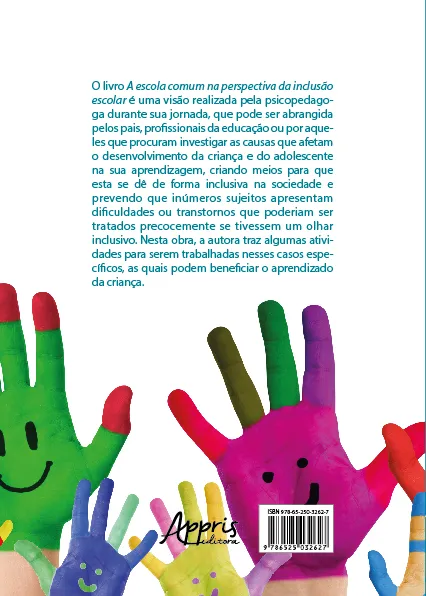 O livro A escola comum na perspectiva da inclusão escolar é uma visão realizada pela psicopedagoga durante sua jornada, que pode ser abrangida pelos pais, profi ssionais da educação ou por aqueles que procuram investigar as causas que afetam o desenvolvimento da criança e do adolescente na sua aprendizagem, criando meios para que esta se dê de forma inclusiva na sociedade e prevendo que inúmeros sujeitos apresentam dificuldades ou transtornos que poderiam ser tratados precocemente se tivessem um olhar inclusivo. Nesta obra, a autora traz algumas atividades para serem trabalhadas nesses casos específicos, as quais podem bene ficiar o aprendizado da criança.