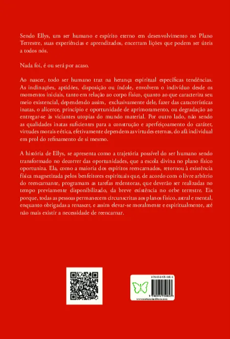 Sendo Ellys, um ser humano e espírito eterno em desenvolvimento no Plano Terrestre, suas experiências e aprendizados, encerram lições que podem ser úteis a todos nós. Uma aventura existencial, que nos apresenta uma pessoa sendo transformada, no decorrer das situações que a escola divina, no plano físico, oportuniza em prol do refinamento de si mesma. Ela, como a maioria dos espíritos reencarnados, retornou à existência física magnetizada pelos benfeitores espirituais que, de acordo com o livre-arbítrio da reencarnante, programam as tarefas redentoras, que deverão ser realizadas no tempo previamente disponibilizado, da sua breve existência. Eis porque, todas as pessoas permanecem circunscritas aos planos físico, astral e mental, enquanto obrigadas a renascer, e assim elevar-se moralmente e espiritualmente, até não mais existir a necessidade de reencarnar.