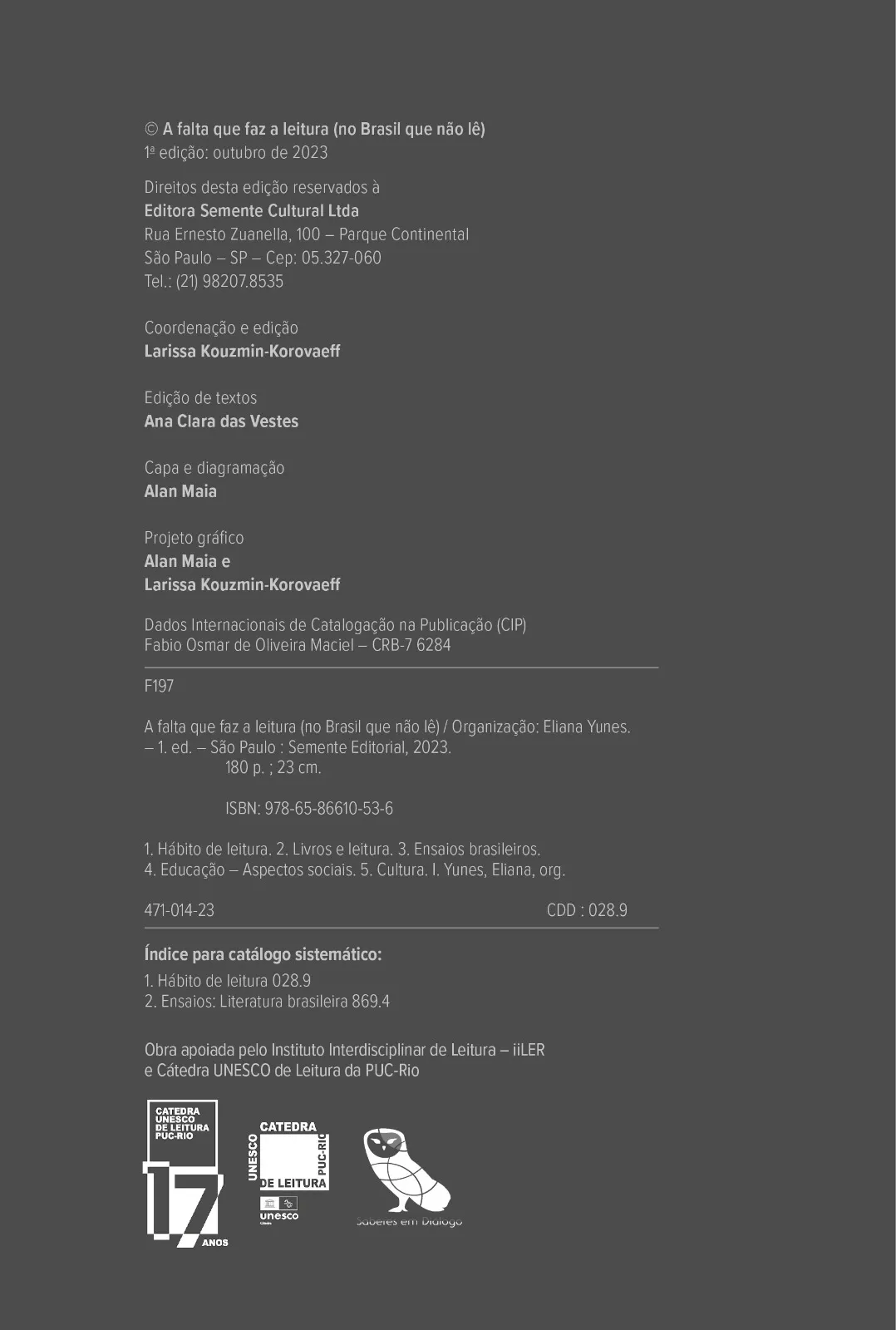 Especificação: A falta que faz a leitura: (no Brasil que não lê)