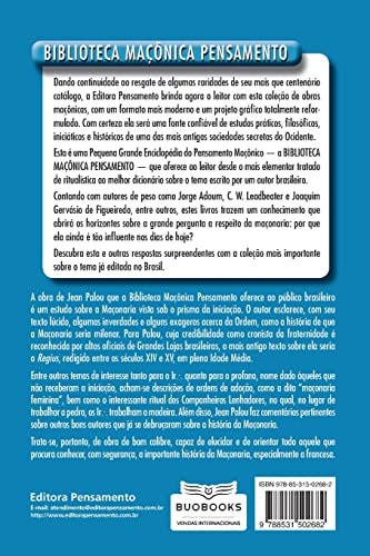 Esse livro é um volume da Biblioteca Maçônica Pensamento. Nesse volume, Jean Palou oferece um estudo sobre a Maçonaria vista sob o prisma da iniciação. O autor esclarece algumas inverdades e alguns exageros acerca da Ordem. Entre outros temas de interesse, acham-se descrições de ordens de adoção, como a dita “maçonaria feminina”, bem como o interessante ritual dos Companheiros Lenhadores. Além disso, Jean Palou faz comentários pertinentes sobre outros bons autores que já se debruçaram sobre a história da Maçonaria. A obra tem como objetivo elucidar e orientar todo aquele que procura conhecer, com segurança, a importante história da Maçonaria, especialmente a francesa.