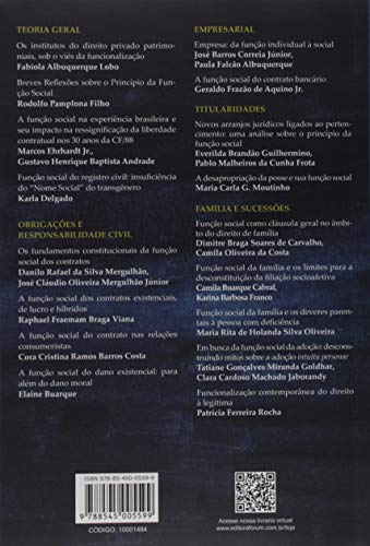 Esta reunião de trabalhos sobre a função social tem por objetivo apresentar as dificuldades de sua delimitação conceitual e aplicação na Teoria Geral do Direito Privado, no campo do direito obrigacional e dos contratos, num intenso diálogo com os microssistemas jurídicos, além de ressaltar a aplicação do instituto no campo do direito das famílias e sucessões. Trata-se de obra fundamental para compreender a funcionalização dos principais institutos que disciplinam as relações privadas sob a perspectiva da solidariedade social, permitindo ao leitor perceber que não se deve empregar a noção de função social como mero reforço semântico, sem a adequada densificação. Os artigos, através da perspectiva de pesquisadores, advogados e magistrados, contextualizam sua aplicação a problemas contemporâneos, analisando criticamente doutrina e jurisprudência, propiciando uma reflexão sobre a expansão da utilização da função social no cenário nacional.
