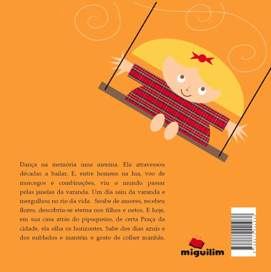 Dança na memória uma menina. Ela atravessou décadas a bailar. E, entre homens na lua, voo de morcegos e combinações, viu o mundo passar pelas janelas da varanda. Um dia saiu da varanda e mergulhou no rio da vida. Soube de amores, recebeu flores, descobriu-se eterna nos filhos e netos. E hoje, em sua casa atrás do pipoqueiro, de certa Praça da cidade, ela olha os horizontes. Sabe dos dias azuis e dos nublados e mantém o gosto de colher manhãs.