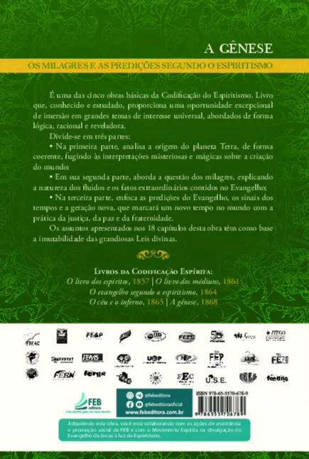 É uma das cinco obras básicas da Codificação do Espiritismo. Livro que, conhecido e estudado, proporciona uma oportunidade excepcional de imersão em grandes temas de interesse universal, abordados de forma lógica, racional e reveladora. Divide-se em três partes: • Na primeira parte, analisa a origem do planeta Terra, de forma coerente, fugindo às interpretações misteriosas e mágicas sobre a criação do mundo; • Em sua segunda parte, aborda a questão dos milagres, explicando a natureza dos fluidos e os fatos extraordinários contidos no Evangelho; • Na terceira parte, enfoca as predições do Evangelho, os sinais dos tempos e a geração nova, que marcará um novo tempo no mundo com a prática da justiça, da paz e da fraternidade. Os assuntos apresentados nos 18 capítulos desta obra têm como base a imutabilidade das grandiosas Leis divinas.
