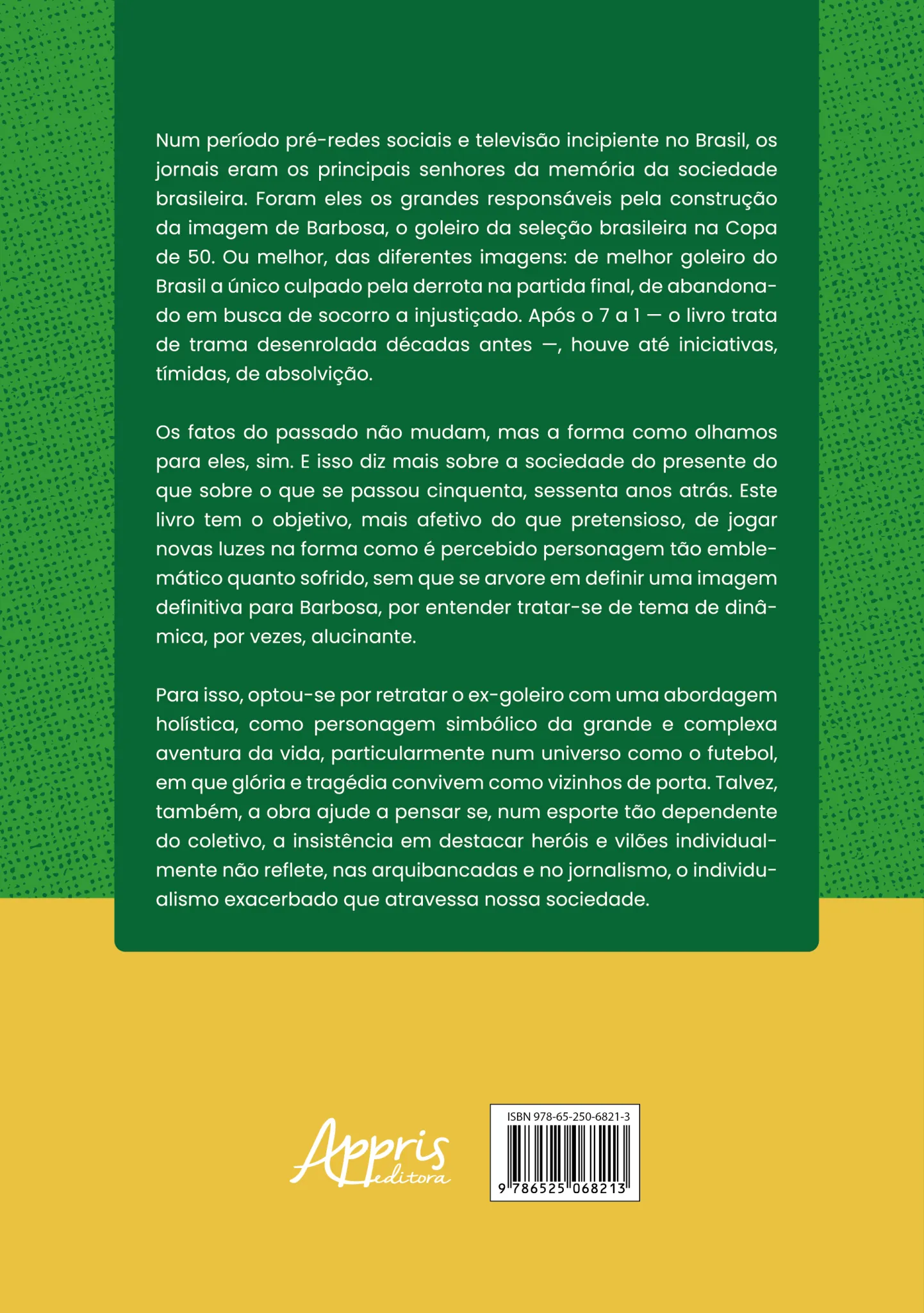 Os fatos do passado não mudam, mas a forma como olhamos para eles, sim. E isso diz mais sobre a sociedade do presente do que sobre o que se passou cinquenta, sessenta anos atrás. Este livro tem o objetivo, mais afetivo do que pretensioso, de jogar novas luzes na forma como é percebido personagem tão emblemático quanto sofrido, sem que se arvore em definir uma imagem definitiva para Barbosa, por entender tratar-se de tema de dinâmica, por vezes, alucinante.
