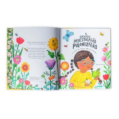 Em meio ao jardim, uma missão especial começa: desvendar o segredo por trás das flores que viram alimento. Com lupa na mão e olhos atentos, a protagonista desta história sai em busca de pistas pela natureza. Entre asas que zumbem, pólen que voa e brotos que crescem, ela descobre como pequenos polinizadores ajudam a transformar flores em frutos, legumes e vegetais, que chegam até a nossa mesa.