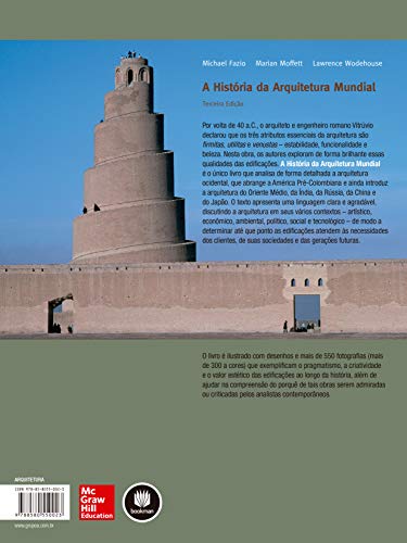 Livro de história da arquitetura mais completo publicado em língua portuguesa, pois inclui capítulos especialmente dedicados à arquitetura da América Pré-Colombiana, dos países islâmicos, da Índia, Rússia, China, do Japão e do Extremo Oriente. Os autores apresentam um texto em linguagem clara e agradável, e exploram os atributos essenciais da arquitetura – estabilidade, funcionalidade e beleza –, além de discutir a arquitetura em seus vários aspectos (artístico, social, econômico, etc.). Esta bela obra é ilustrada com desenhos e mais de 550 fotografias.