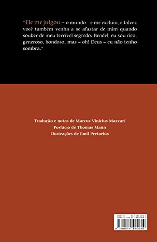 A certa altura de seu romance Ilusões perdidas, Balzac refere-se a uma obra então muito difundida entre jovens parisienses “ávidos por leituras e desprovidos de dinheiro”. Trata-se da misteriosa narrativa que se apresenta aqui ao leitor brasileiro, a qual Thomas Mann caracterizou como “novela fantástica”, apoiando-se certamente na breve definição formulada por Goethe em 1827: “Pois que outra coisa é a novela senão um acontecimento inaudito?”. Em torno de um episódio dos mais peculiares (a troca da sombra por uma inesgotável “bolsa da fortuna”), Chamisso elaborou uma história que, desde a sua publicação em 1814, vem suscitando as mais variadas interpretações. Pois o que significa propriamente essa sombra que o ambicioso Schlemihl cede ao “maligno” e cuja falta o faz mergulhar na mais profunda miséria humana, que ele só consegue superar — agora então como botânico — mediante um retorno à natureza de caráter maravilhoso, mas também tipicamente rousseauniano? Simbolizaria a ausência de sombra uma condição vivenciada pelo próprio Chamisso, a do homem sem pátria e sem raízes? Estaria a sombra figurando a solidez burguesa, o prestígio social calcado na aparência? Seria ela enfim uma espécie de “alma exterior”, para recorrer aqui à famosa teoria esboçada por Machado de Assis no conto “O espelho”?