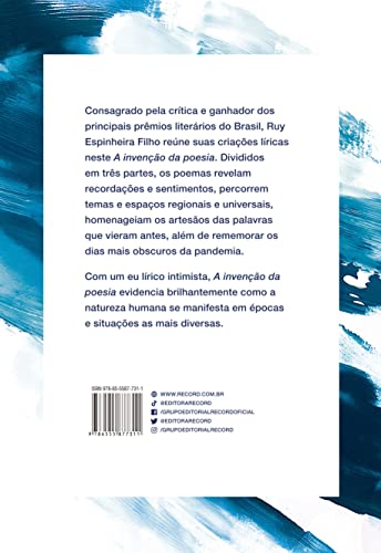 Um dos poetas mais expressivos em atividade no país, Ruy Espinheira Filho reúne suas criações líricas neste A invenção da poesia. Membro da Academia de Letras da Bahia, Ruy foi eleito um dos vinte poetas contemporâneos mais importantes do Brasil. Considerado por Carlos Drummond de Andrade um autor de uma “poesia concentrada e de sutil expressão”, Ruy Espinheira Filho é consagrado pela crítica e ganhador dos principais prêmios literários do país. Neste A invenção da poesia, o poeta baiano reúne suas criações líricas produzidas entre 2019 e 2022. Divididos em três partes, os poemas revelam dores que o passado ainda remonta, voltando a sentimentos e questões que se prolongam no presente. Um livro repleto de recordações. Na primeira parte, Ruy percorre temas e espaços regionais, com a mesma desenvoltura que se detém naqueles de cunho universal. Na segunda parte, faz referência aos dias mais obscuros da pandemia. E finaliza com uma homenagem aos ilustres Machado de Assis e Graciliano Ramos, a partir de possíveis diálogos estabelecidos com suas obras. A invenção da poesia apresenta um eu lírico que se mostra impressionado e reflexivo acerca da passagem do tempo. Com caráter intimista e destreza para revelar minúcias, Ruy Espinheira Filho evidencia brilhantemente como a natureza humana se manifesta em épocas e situações as mais diversas. “Poeta do sonho e da utopia, Ruy Espinheira Filho faz poesia com o coração. Não por acaso, a palavra mais repetida neste A invenção da poesia é justamente sonho, no singular e no plural. É assim que, poema após poema, livro após livro, Ruy Espinheira Filho vai se consolidando como um dos grandes nomes da poesia brasileira de todos os tempos.” – Ricardo Vieira Lima “Trata-se, por excelência, do poeta da memória na poesia brasileira contemporânea, tema explorado ao mesmo tempo com agudeza de pensamento e com a necessária transmutação lírica.” – Alexei Bueno