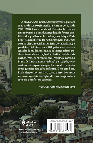 A máquina das desigualdades apresenta questões centrais da sociologia brasileira entre as décadas de 1950 e 2020. A principal intérprete de Florestan Fernandes do nosso tempo nos entrega um livro que condensa décadas de pesquisa. Trata-se de uma reflexão sobre o sociólogo paulista, é claro, mas que não se detém nele, pois o que está em jogo é a análise de uma teorização sociológica rigorosa, original e inovadora que enlaçou diferentes gerações de pesquisadores e que interpela fortemente o debate atual das ciências sociais. Elide Rugai Bastos sintetiza neste livro: os dilemas de uma ciência social na periferia do capitalismo; o papel dos intelectuais e seu diálogo transnacional; os sentidos de mudanças sociais e os limites à democracia; entraves da efetivação dos direitos da cidadania na modernidade burguesa; raça, racismo e nação no Brasil.