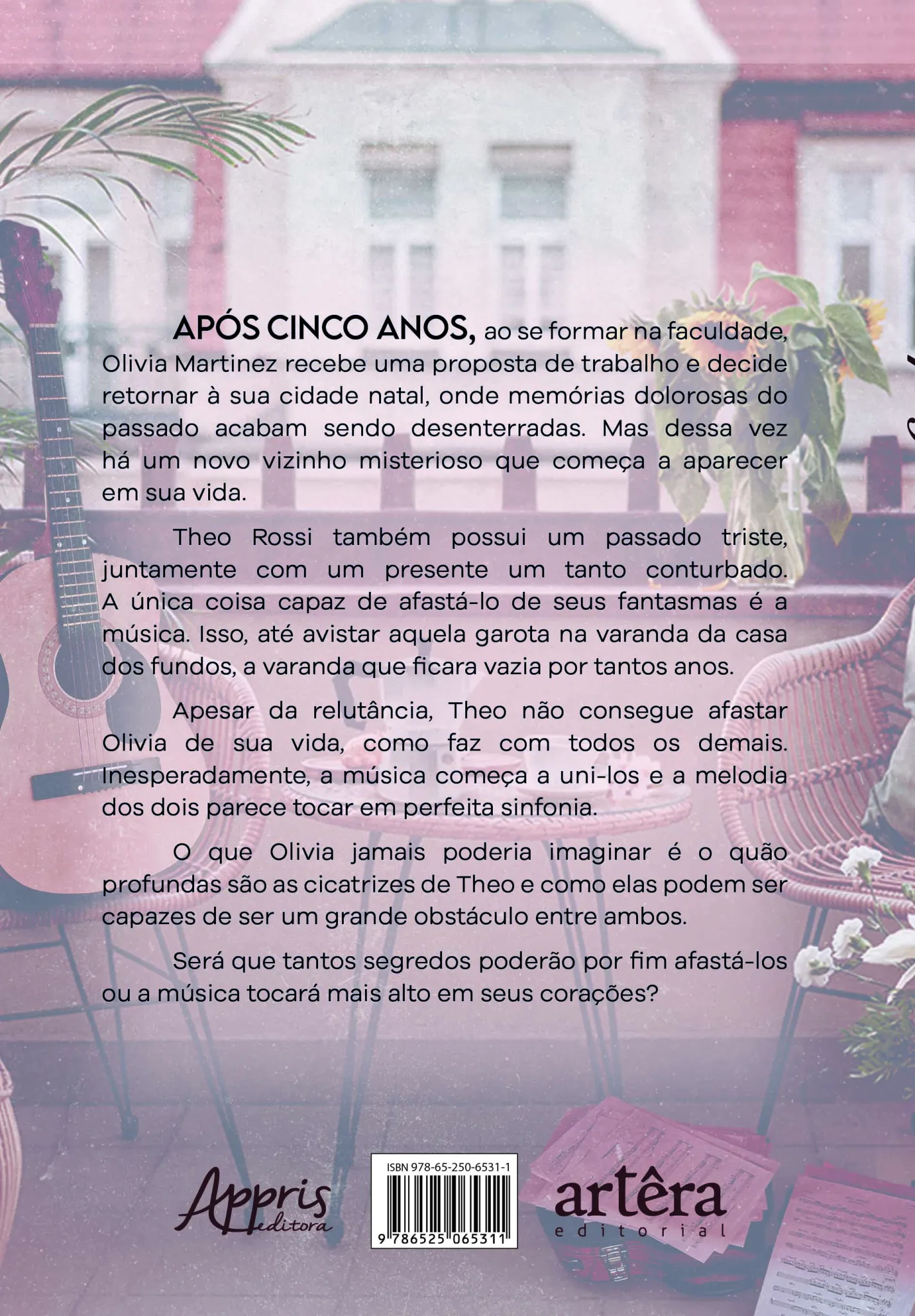 Após cinco anos, ao se formar na faculdade, Olivia Martinez recebe uma proposta de trabalho e decide retornar à sua cidade natal, onde memórias dolorosas do passado acabam sendo desenterradas. Mas dessa vez há um novo vizinho misterioso que começa a aparecer em sua vida. Theo Rossi também possui um passado triste, juntamente com um presente um tanto conturbado. A única coisa capaz de afastá-lo de seus fantasmas é a música. Isso, até avistar aquela garota na varanda da casa dos fundos, a varanda que ficara vazia por tantos anos. Apesar da relutância, Theo não consegue afastar Olivia de sua vida, como faz com todos os demais. Inesperadamente, a música começa a uni-los e a melodia dos dois parece tocar em perfeita sinfonia. O que Olivia jamais poderia imaginar é o quão profundas são as cicatrizes de Theo e como elas podem ser capazes de ser um grande obstáculo entre ambos. Será que tantos segredos poderão por fim afastá-los ou a música tocará mais alto em seus corações?