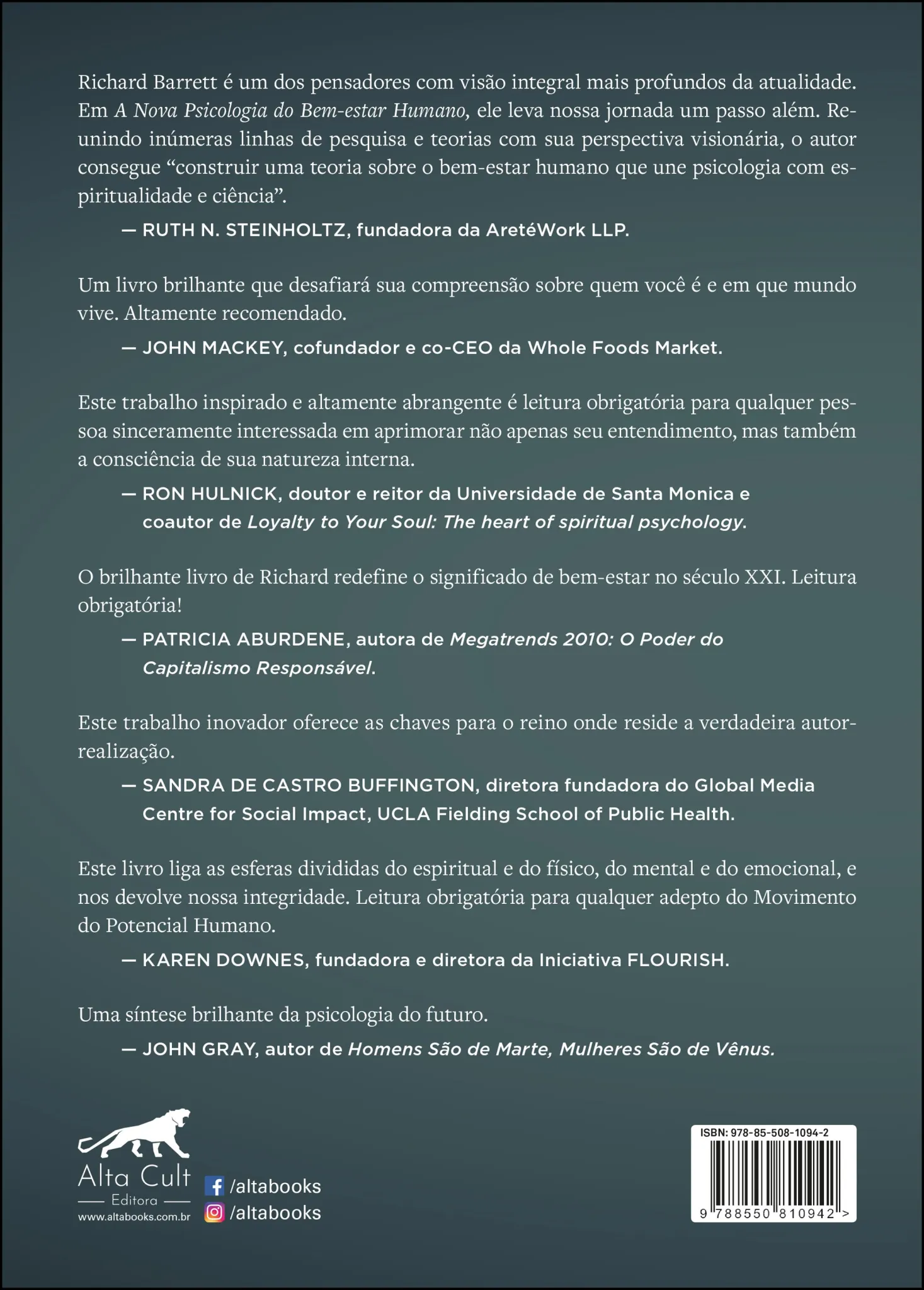 Este livro busca reunir noções de diversos campos de conhecimento, incorporando pensamentos e ideias de pensadores reconhecidos à sabedoria ancestral consolidada com pensamentos e ideias do próprio autor. A proposta é que a área de jurisdição da psicologia seja ampliada e permita a construção de uma nova teoria do bem-estar humano que unifique diferentes abordagens psicológicas e explique como ciência, espiritualidade e psicologia podem ser reunidas em uma única filosofia.