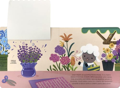 Levante cada aba e esfregue o dedo para sentir os deliciosos aromas que deixam Aromélia tão feliz!