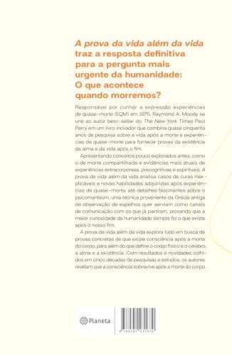 A prova da vida além da vida traz a resposta definitiva para a pergunta mais urgente da humanidade: O que acontece quando morremos? Responsável por cunhar a expressão experiências de quase-morte (EQM) em 1975, Raymond A. Moody se une ao autor best-seller do The New York Times Paul Perry em um livro inovador que combina quase cinquenta anos de pesquisa sobre a vida após a morte e experiências de quase-morte para fornecer provas da existência da alma e da vida após o fim. Apresentando conceitos pouco explorados antes, como o de morte compartilhada e evidências mais atuais de experiências extracorpóreas, precognitivas e espirituais, A prova da vida além da vida analisa casos de curas inexplicáveis e novas habilidades adquiridas após experiências de quase-morte, até detalhes fascinantes sobre o psicomanteum, uma técnica proveniente da Grécia antiga de observação de espelhos quer serviam como canais de comunicação com os que já partiram, provando que a maior curiosidade da humanidade sempre foi o que existe após o nosso fim. A prova da vida além da vida explora tudo em busca de provas concretas de que existe consciência após a morte do corpo físico, para além do que define o corpo físico e o cérebro, a alma e a existência. Com resultados e novidades colhidas em cinco décadas de pesquisas e estudos, os autores revelam que a consciência sobrevive após a morte do corpo.