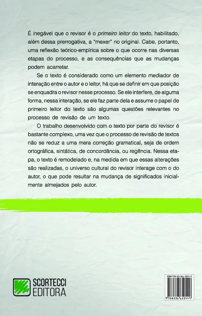 O livro tem o objetivo de demonstrar o que ocorre no processo de revisão do texto e como se dá a interação autor-revisor nesse momento. Qualquer texto, para ser considerado “acabado”, deve passar por uma revisão, que faz parte do processo de produção textual. A revisão consiste, primeiramente, em verificar se a ideia inicialmente pretendida pelo autor corresponde ao texto que foi produzido. Deve-se observar também se não foram infringidas as regras linguísticas e as normas do padrão culto da língua, bem como se não há equívocos de estratégia, isto é, se foram feitas as melhores escolhas gramaticais e lexicais, a fim de tornar o texto claro para o leitor. É imprescindível analisar se as modificações feitas pela revisão não geraram possíveis alterações de sentido, inicialmente previsto pelo autor. Por essa razão, é destacada a importância da parceria do autor e revisor para o desempenho do trabalho de revisão do texto.