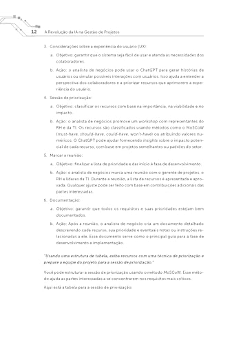 Neste livro, você encontrará insights práticos, estudos de caso e sugestões de prompts para utilizar a IA no seu dia a dia. Em um texto que o convida a ser participante ativo da narrativa que se desenrola, especialistas compartilham experiências reais e mostram como essas ferramentas podem transformar a sua maneira de trabalhar desde o engajamento de stakeholders até a gestão de riscos.