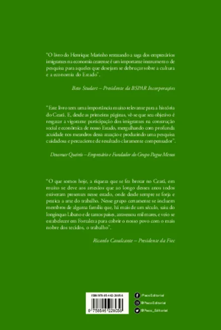 O livro do Henrique Marinho retratando a saga dos empresários imigrantes na economia cearense é um importante instrumento de pesquisa para aqueles que desejam se debruçar sobre a cultura e a economia do Estado.
