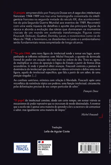 François Dosse narra de forma sistemática a aventura histórica e criativa dos intelectuais franceses nesse grande painel panorâmico, que vai da Libertação e do fim da Segunda Guerra Mundial ao bicentenário da Revolução Francesa e à defenestração do muro de Berlim.