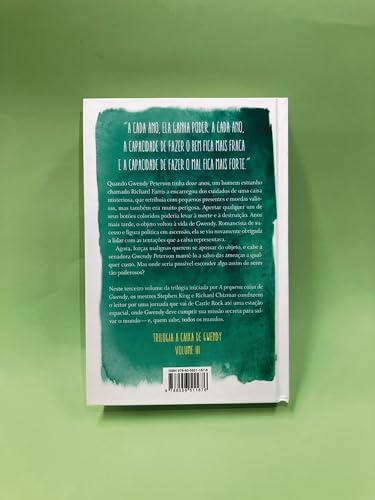 No terceiro volume da série iniciada por A pequena caixa de Gwendy, os mestres Stephen King e Richard Chizmar conduzem o leitor por uma jornada que vai de Castle Rock até uma estação espacial, onde Gwendy deve cumprir sua missão secreta para salvar o mundo — e, quem sabe, todos os mundos. Quando Gwendy Peterson tinha doze anos, um estranho homem chamado Richard Farris a encarregou dos cuidados de uma caixa misteriosa, que retribuía com pequenos presentes, mas também trazia perigos; apertar qualquer um de seus oito botões coloridos poderia levar à morte e à destruição. Anos mais tarde, o objeto voltou à vida de Gwendy. Romancista de sucesso e figura política em ascensão, ela se viu novamente obrigada a lidar com as tentações que a caixa representava. Agora, forças malignas querem se apossar da caixa, e cabe à senadora Gwendy Peterson mantê-la a salvo das ameaças a qualquer custo. Mas onde seria possível esconder um objeto desses de entidades tão poderosas? “A cada ano, ela ganha poder. A cada ano, a capacidade de fazer o bem fica mais fraca e a capacidade de fazer o mal fica mais forte.”