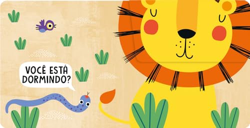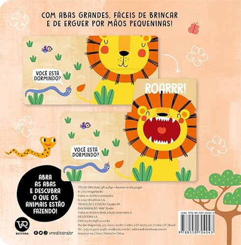 Livro de abas com cenas de animais da selva para ler e brincar.