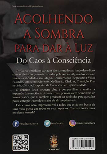 Temas espiritualistas variados são costurados ao longo deste livro com as vivências pessoais narradas pela autora. Alguns dos temas e vivências abordados são: Magia, Reencarnação, Regressão a Vidas Passadas, Autoconhecimento, Meditação, Chakras, Transição Planetária, Ciência, Despertar da Consciência e Espiritualidade. O objetivo desta pequena obra é compartilhar e auxiliar à expansão da consciência de mais e mais pessoas, além de mostrar, de forma prática, que as sombras precisam ser acolhidas para que a luz possa emergir trazendo encaixe de alma e plenitude. Esta é uma obra imprescindível a todos que estão em busca de uma vida plena em todos os seus aspectos. Tenham todos uma excelente jornada!