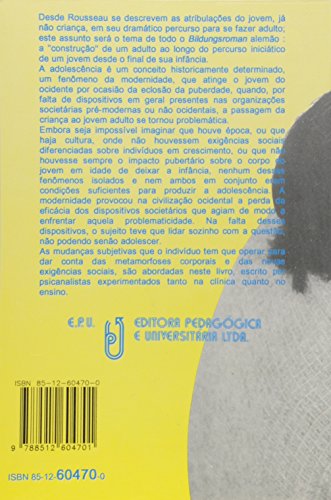 A adolescência é um conceito historicamente determinado, um fenômeno da modernidade, que atinge o jovem do ocidente por ocasião da eclosão da puberdade, quando, por falta de dispositivos em geral presentes nas organizações societárias pré-modernas ou não ocidentais, a passagem da criança ao jovem adulto se tornou problemática. As mudanças subjetivas que o indivíduo tem que operar para dar conta das metamorfoses corporais e das novas exigências sociais são abordadas neste livro, escrito por psicanalistas experimentados tanto na clínica quanto no ensino.