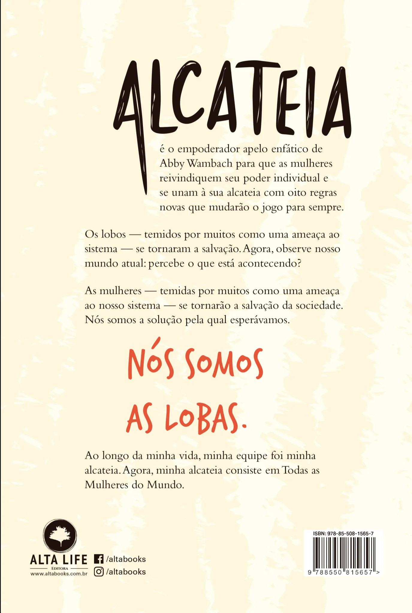 Alcateia é o empoderador apelo enfático de Abby Wambach para que as mulheres reivindiquem seu poder individual e se unam à sua alcateia com oito regras novas que mudarão o jogo para sempre. Os lobos — temidos por muitos como uma ameaça ao sistema — se tornaram a salvação. Agora, observe nosso mundo atual: percebe o que está acontecendo? As mulheres — temidas por muitos como uma ameaça ao nosso sistema — se tornarão a salvação da sociedade. Nós somos a solução pela qual esperávamos.