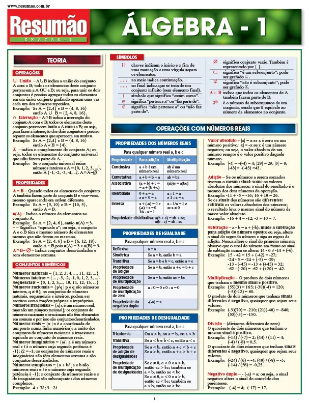 Especificação: Álgebra 1: