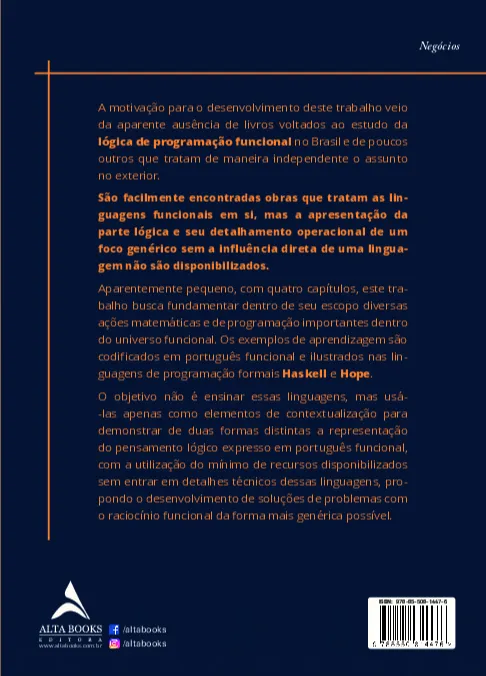 Esta obra mostra conceitos relacionados à programação funcional: Álgebra, Aritmética, Conjuntos e Funções.