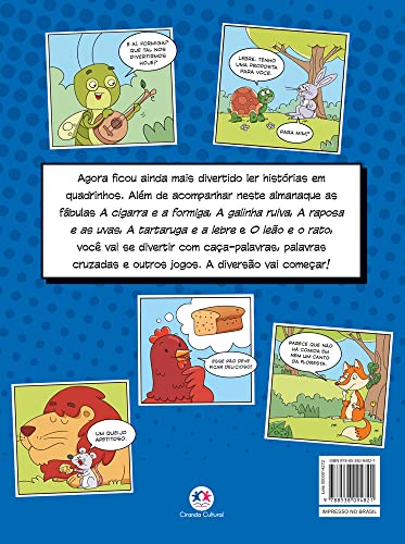 Agora ficou ainda mais divertido ler histórias em quadrinhos. Além de acompanhar neste almanaque as fábulas A cigarra e a formiga, A galinha ruiva, A raposa e as uvas, A tartaruga e a lebre e O leão e o rato, você vai se divertir com caça-palavras, palavras cruzadas e outros jogos. A diversão vai começar!