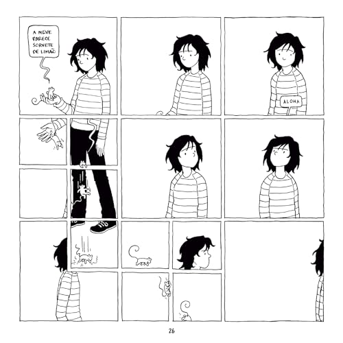 Numa caminhada por paisagens oníricas e surreais, esta narrativa gráfica traz uma série de encontros em uma sequência de quadros com poucos diálogos e muitas surpresas. Ao longo das páginas, a personagem se desloca por cenários que se formam e desaparecem dentro de uma realidade e uma lógica próprias, como é comum aos sonhos. Nesse percurso inusitado por cidades e paisagens naturais, sentimentos comuns e universais como amor, luto e amizade são despertados a cada novo encontro.