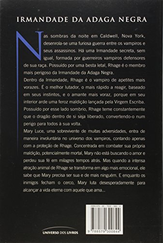 Nas sombras da noite em Caldwell, Nova York, desenrola-se uma sórdida e cruel guerra entre os vampiros e seus carrascos os redutores. Há uma irmandade secreta, sem igual, formada por seis vampiros defensores de sua raça. Possuído por uma besta letal, Rhage é o membro mais perigoso da Irmandade da Adaga Negra. Dentro da Irmandade, Rhage é o vampiro de apetites mais vorazes. É o melhor lutador, o mais rápido a reagir, baseado em seus instintos, e o amante mais voraz, porque em seu interior arde uma feroz maldição lançada pela Virgem Escriba. Possuído por esse lado sombrio, Rhage teme constantemente que o dragão dentro de si seja liberado, convertendo-o num perigo letal para todos à sua volta. Mary Luce, uma sobrevivente de muitas adversidades, entra de maneira involuntária no universo dos vampiros, contando apenas com a proteção de Rhage. Concentrada em combater sua própria maldição, potencialmente mortal, Mary não está em busca de amor e perdeu sua fé em milagres tempos atrás. Mas quando a intensa atração animal de Rhage se transforma em algo mais emocional, ele sabe que Mary precisa ser sua e de mais ninguém. E enquanto os inimigos fecham o cerco, Mary luta desesperadamente para alcançar a vida eterna com aquele que ama…