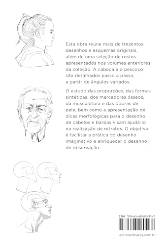 Esta obra reúne mais de trezentos desenhos e esquemas em que a cabeça e o pescoço são detalhados passo a passo, a partir de ângulos variados. O estudo das proporções, das formas sintéticas, dos marcadores ósseos, da musculatura e das dobras de pele, bem como apresentação de dicas morfológicas para o desenho de cabelos e barbas visam ajudá-lo na realização de retratos. O objetivo é facilitar a prática do desenho imaginativo e enriquecer o desenho de observação.