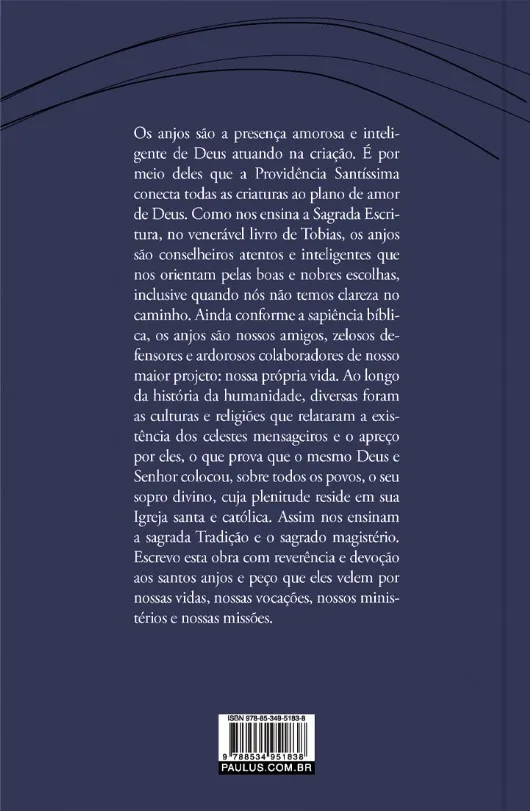 Os anjos são a presença amorosa e inteligente de Deus atuando na criação, e, por meio deles, a Providência Santíssima conecta todas as criaturas ao plano de amor de Deus. Como nos ensina a Sagrada Escritura, os anjos são conselheiros atentos e inteligentes que nos orientam pelas boas e nobres escolhas. Neste livro, o autor apresenta roteiros para uma leitura orante em companhia desses nossos amigos e zelosos defensores. Cada roteiro é baseado em uma passagem bíblica que retrata a atuação dos anjos na vida do povo de Deus.