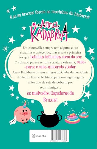 E se as bruxas forem as mocinhas da história? Em Moonville sempre tem alguma coisa estranha acontecendo, mas essa é a primeira vez que bolinhos brilhantes caem do céu! O culpado parece ser uma criatura estranha, meio-porco e meio-unicórnio voador. Anna Kadabra e os seus amigos do Clube da Lua Cheia vão ter de levar o bichinho para um lugar seguro, antes que ele seja descoberto por seus inimigos… os malvados Caçadores de Bruxas!