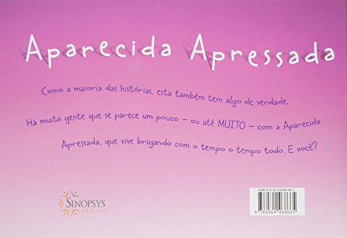 Este é um livro para crianças e adolescentes. E, também, para pais, educadores e terapeutas. Esta história está relacionada a um problema bastante comum atualmente: o excesso de tarefas e a ansiedade por cumprir cada vez mais compromissos que, com frequência, acabam se tornando rituais sem significado.rnrnBoa parte das pessoas funciona mais ou menos assim como a Aparecida Apressada, brigando com o tempo o tempo todo. Se você se identificar com a personagem desta história, lembre-se que ainda pode mudar. Sempre é tempo de mudar! E se você tem filhos parecidos com a Aparecida, pode ser importante ajudá-los agora, revendo rotinas e metas, para que cresçam saudáveis dentro de suas possibilidades.rnrnOs autores, Almir e Zilda, são psicólogos e professores. Já escreveram vários livros e também criaram testes de psicologia, a maioria sobre o tema das relações interpessoais. Quando seus filhos eram pequenos, Almir e Zilda gostavam de contar histórias para eles, mas não contavam apenas as histórias que liam nos livros, inventavam muitas histórias sempre procurando desenvolver um enredo educativo.rnrnrnCONHEÇA OS AUTORESrnrnAlmir Del PretternGraduado em Psicologia pela Fundação Educacional de Bauru, mestre em Psicologia pela Pontifícia Universidade Católica de Campinas e doutor em Psicologia Experimental pela Universidade de São Paulo. Hoje, atua como pesquisador do CNPq, com experiência na área de Psicologia (ênfase em Processos Grupais e de Comunicação), com foco principalmente nos seguintes temas: habilidades sociais, competência social, assertividade, intervenção em grupo e desenvolvimento interpessoal. Atua, também, como professor titular voluntário vinculado ao programa de Pós-graduação em Educação Especial e em Psicologia da Universidade Federal de São Carlos.rnrnZilda A. P. Del PretternGraduada em psicologia pela Universidade Estadual de Londrina, mestre em Psicologia Social pela Universidade Federal da Paraíba, doutora em Psicologia Experimental pela Universidade de São Paulo e pós-doutorada em Psicologia das Habilidades Sociais pela Universidade da Califórnia. Hoje, atua como pesquisadora do CNPq e professora titular na Universidade Federal de São Carlos, vinculada ao Programa de Pós-graduação em Psicologia da Universidade Federal de São Carlos (PPGPsi) e ao Instituto Nacional de Ciência e Tecnologia sobre Comportamento, Cognição e Ensino (INCT-ECCE) e coordenadora de GT sobre Habilidades Sociais na Associação Nacional de Pesquisa e Pós-graduação em Psicologia (ANPEPP). Tem experiência em Relações Interpessoais, com foco principalmente nos seguintes temas: habilidades sociais, competência social, assertividade, educação escolar, formação de professores e desenvolvimento interpessoal/socioemocional.rnrnDADOS TÉCNICOSrnrnISBN: 978-85-64468-66-5rnFormato: 23 x 16cm | 16 Páginas | Peso: 68grnAcabamento: Capa grampeada