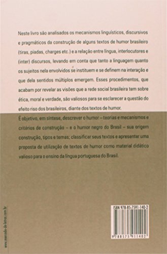 Neste livro são analisados os mecanismos linguísticos, discursivos e pragmáticos da construção de alguns textos de humor brasileiro (tiras, piadas, charges etc.) e a relação entre língua, interlocutores e (inter) discursos, levando em conta que tanto a linguagem quanto os sujeitos nela envolvidos se instituem e se definem na interação e que dela sentidos múltiplos emergem. Esses procedimentos, que acabam por revelar as visões que a rede social brasileira tem sobre ética, moral e verdade, são valiosos para se esclarecer a questão do efeito riso dos brasileiros, diante dos textos de humor.