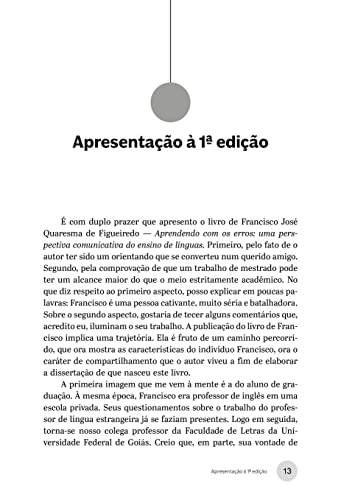 Aprendendo com os erros: Uma perspectiva comunicativa do ensino de línguas convida o público-leitor a considerar o erro na aprendizagem de uma língua estrangeira como passo necessário e fundante do processo de ensino de línguas. Quando desenvolvemos uma visão mais científica dos erros e passamos a usar meios de correção menos dogmáticos, estimulamos os estudantes a se arriscarem mais e a aprenderem por meio de seus erros. Por meio do arcabouço teórico sobre escrita, erro e correção em uma língua estrangeira, o autor faz análises em vista de compreender e explicar os erros de estudantes brasileiros na escrita em língua inglesa, de modo a mostrar algumas estratégias de aprendizagem usadas por eles ao escrever nessa língua. No entanto, as teorias usadas neste livro e as análises aqui feitas podem ser aplicadas a contextos de aprendizagem de línguas estrangeiras em geral. De cunho didático-reflexivo, a obra destina-se aos estudantes de graduação em Letras, em formação para se tornarem professores de língua estrangeira, bem como aos docentes que queiram refletir sobre as questões de erro e correção e aplicarem as reflexões suscitadas pela leitura deste livro em seu contexto de atuação.