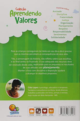 Para as crianças conseguirem ter êxito em seu dia a dia é preciso que as mesmas percebam as consequências de seus atos. Tito, o personagem da história, não refletiu sobre suas escolhas, e ao final sentiu-se frustrado. O uso adequado dos recursos deve ser ensinado desde cedo, explicando para os pequenos os resultados de suas atitudes sem planejamento. Manter o foco com disciplina e disposição ajudará a alcançar os objetivos propostos.
