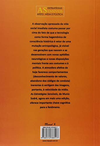 Pouco mais de uma década desde a publicação da obra As estratégias sensíveis, livro em que Muniz Sodré examina a preponderância da estesia (a estética em sentido amplo) ou simplesmente do sensório na economia, na política, na cultura, particularmente na esfera da mídia em todas as suas modalidades expressivas. Até então, registravam-se poucos trabalhos de autores estrangeiros sobre o assunto, mas nada de substancial na bibliografia brasileira. As estratégias sensíveis veio ocupar um lugar fecundo no panorama dos estudos comunicacionais, em especial no âmbito da pós-graduação, em que, mais recentemente, começaram a surgir descrições e análises empíricas dos fenômenos afetuais. Esses estudos, que agora se multiplicam, estão centrados nas formas habituais de expressão de emoções (alegria, cólera, asco, medo, surpresa e tristeza), mas podem estender-se … gama mais ampla do que se vem chamando de nossa “dimensão emotiva”. A cultura da internet e das redes sociais, mas também a dos vínculos comunitários, não pode ser plenamente compreendida sem o apelo ao conceito de sensório precisamente nessa base conceitual que se afirma o trabalho pioneiro de Sodré, agora contemplado em mais uma edição (fragmentos do texto da orelha por Raquel Paiva, professora titular da ECO/UFRJ).
